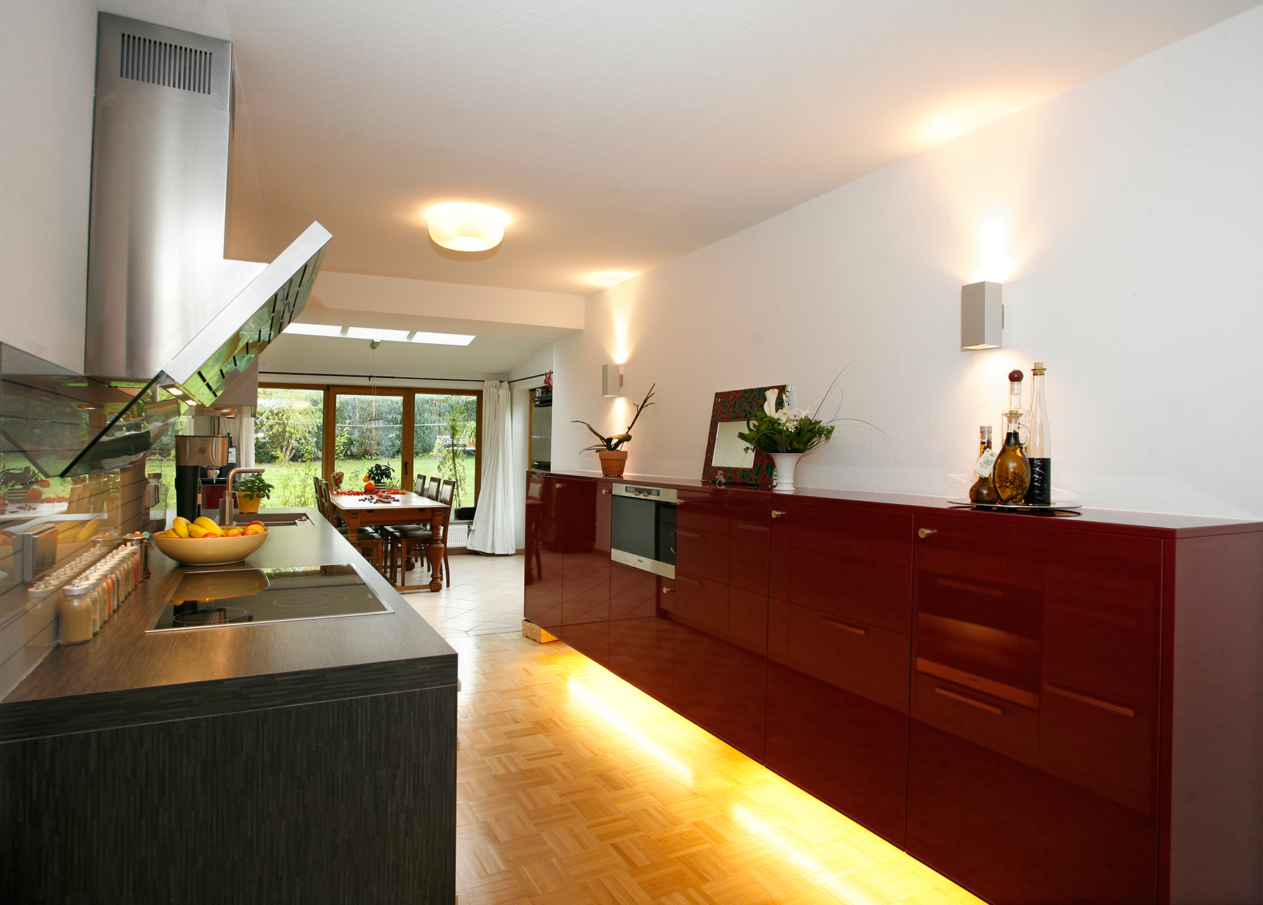 Jörg Scheibe setzt in seiner Küche auf klare Linien und ein individuelles Lichtkonzept. „Dank der Küchenplanung von Miele Engelhardt können wir den Platz in unserer Küche optimal nutzen und die indirekte Beleuchtung gibt der Küche einen ganz besonderen Charme.“